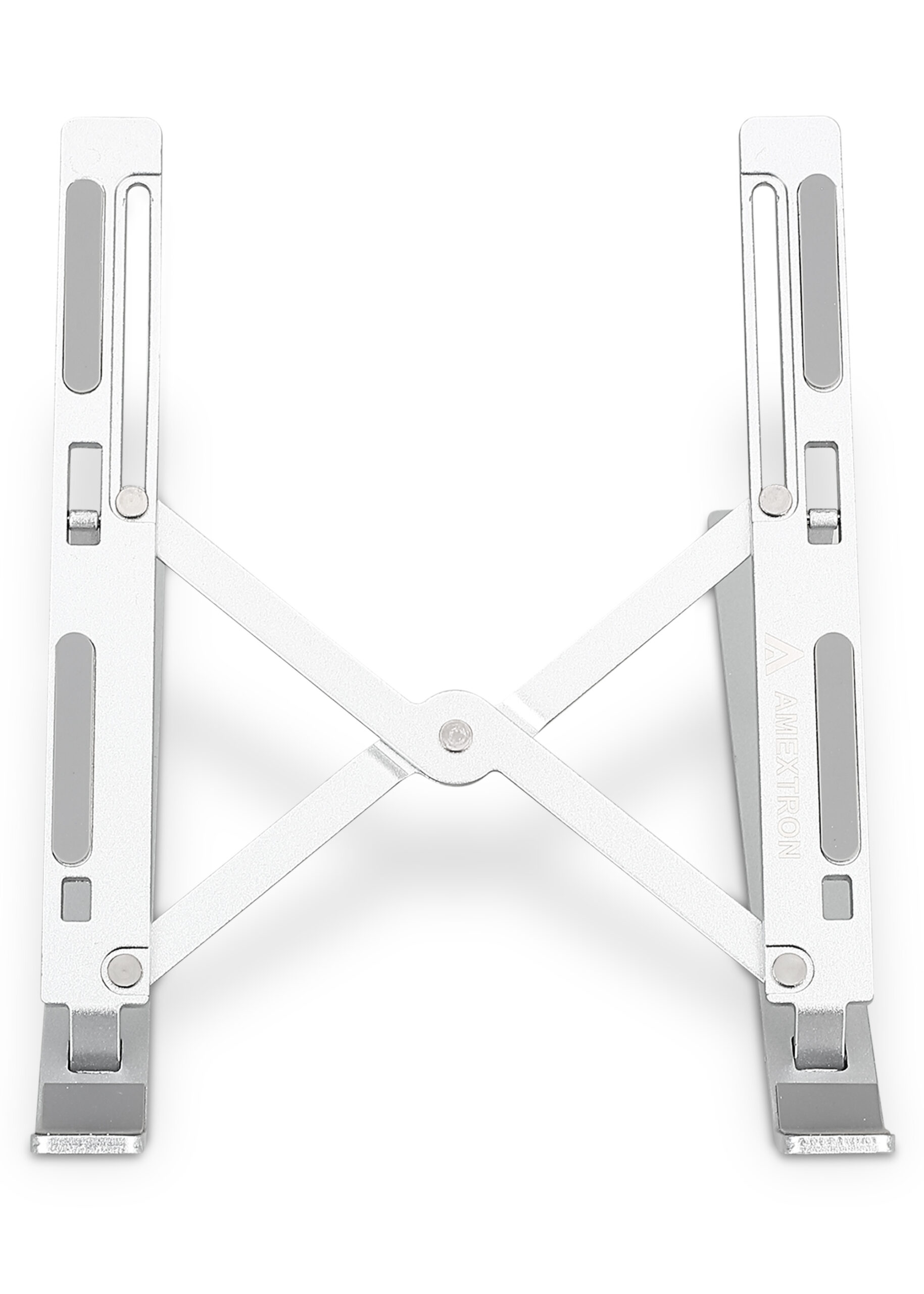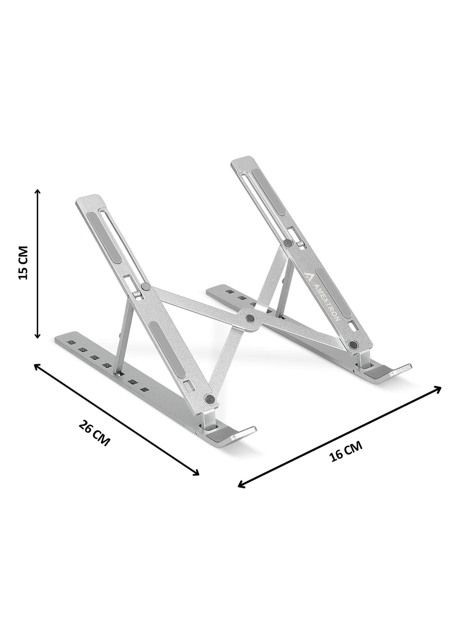 Upgrade your workspace with the AMEXTRON Height Adjustable Laptop Stand. It has been crafted from premium aluminum alloy for durability and a modern look. Designed with anti-slip silicone pads. It keeps your device stable and secure while protecting it from scratches. The open structure enhances airflow to prevent overheating, extending the life of your laptop.