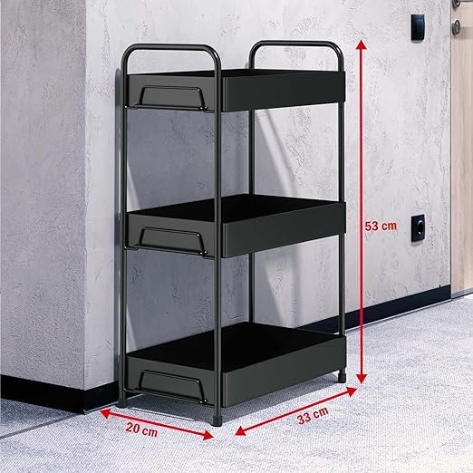 Crafted from high-quality iron metal, this 3-layer Multipurpose Rack is designed for durability and stability. The sturdy frame ensures long-lasting use, making it ideal for heavy-duty storage needs in various spaces like the bathroom, kitchen, or office.